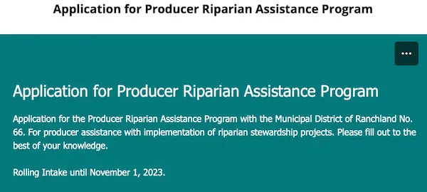 The MD of Ranchland offers funding assistance to producers wishing to implement riparian stewardship projects. Eligible projects can receive funding of up to $2,000 and can include riparian fencing, streambank restoration, and off-site watering.