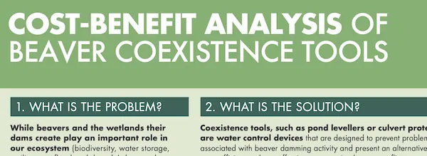 Examples of beaver coexistence strategies include the installation of pond levellers, culvert protectors, tree wrapping, and beaver dam analogues.